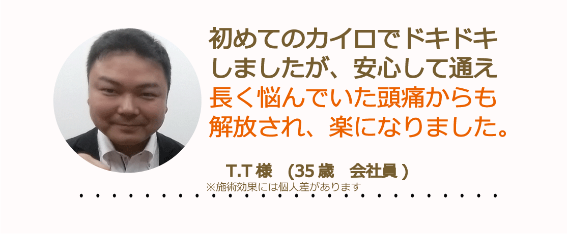 ※施術を受けた方の感想であり、効果・効能を保証しているものではありません